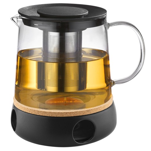 СТЕКЛЯННЫЙ КУВШИН, ВСТАВКА ДЛЯ ТРАВЯНОГО ЧАЯ, 1,5 Л + ЧЕРНЫЙ НАГРЕВАТЕЛЬ