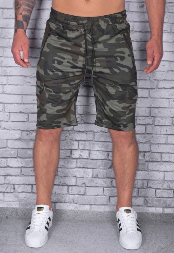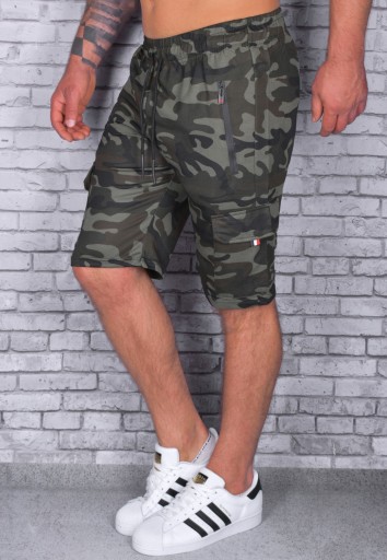 Spodenki wyposażono w dwie kieszenie zapinane na suwaki oraz dwie boczne.