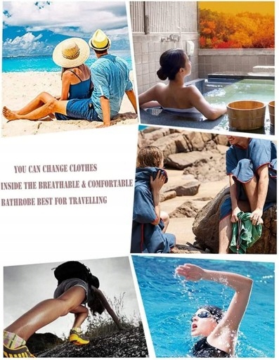 ✅ RĘCZNIK Z KAPTUREM PLAŻOWYM: 100% poliester, ręcznik ponczo wykonany z mikrofibry, miękki, dobrze wchłaniający wodę, szybko schnie, kompaktowy, lekki, mała objętość, łatwy do przenoszenia w podróży. Można prać w pralce.