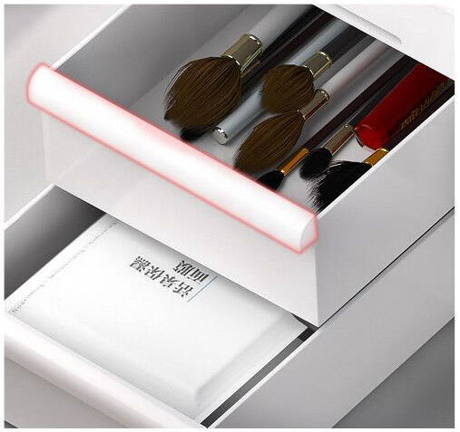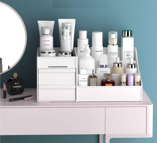 Funkcjonalność: Dzięki dwóm szufladkom o płaskim profilu, masz idealne miejsce na przechowywanie szminek, cieni do powiek i innych płaskich przedmiotów. Szufladki wysuwają się płynnie, a nawet można je całkowicie wyjąć, co ułatwia dostęp do zawartości.