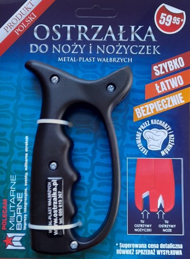 - Oferowana Państwu Ostrzałka ostrzy wszystkie ostre przedmioty: noże gładkie, noże z zębami dużymi jak i drobnymi, noże do mięs, serów i warzyw, nożyczki do papieru, materiału i włosów.