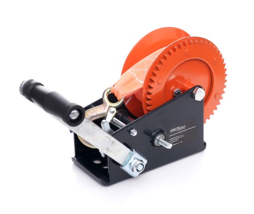Wciągarka ręczna pasowa wykonana z wysokiej jakości materiałów zapewniających jej odpowiednią trwałość i niezawodność. Wyposażona jest w mocny odlewany hak odlewany hak, który posiada sprężynę zwrotną. Do sterowania urządzeniem służy ręczna korba razem z mechanizmem zapadkowym. Sprzęt zapewnia bezpieczne i bezproblemowe wciąganie i opuszczanie przedmiotów.