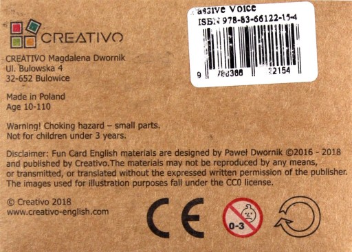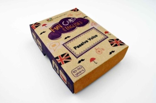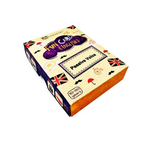Zestaw składa się z: 50 kart obrazkowych prezentujących użycie strony biernej w różnych czasach.