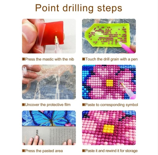 Obszar wiercenia:Używamy okrągłe diamentowe akrylowych w tym samym kolorze co oryginalny DMC, co daje podwójny blask i piękny wygląd mozaiki.