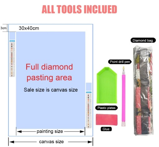 Uwaga:Nasz obraz diamentowy jest bez ramki i nie jest skończony, musisz go wykończyć samodzielnie.
