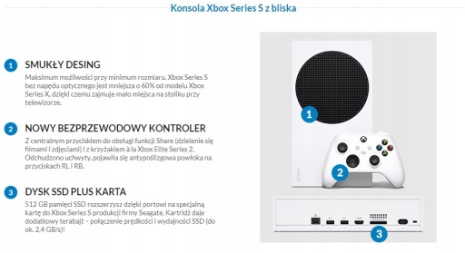 ✔️ konsola XBOX SERIES S 500GB SSD (bez napędu)