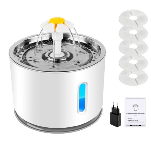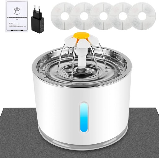Miska wodna wykonana jest ze stali nierdzewnej,Fontanna dla zwierząt domowych o super dużej pojemności, Specjalnie zaprojektowana dla Twoich ulubionych zwierząt domowych.