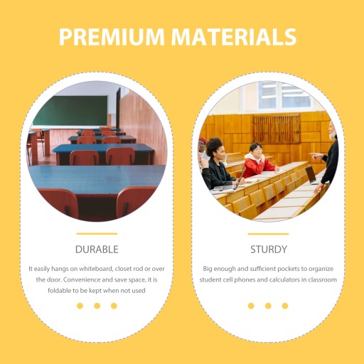 Wystarczająco duże i wystarczające kieszenie, aby uporządkować telefony komórkowe i kalkulatory uczniów w klasie.