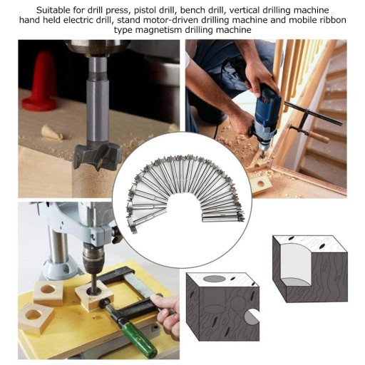 5. Wykonany ze stali stopowej tytanu, zapewniający trwałą trwałość. Wiertła forstnera ze stali szybkotnącej do otworów zakładkowych, kątowych i kieszeniowych we wszystkich rodzajach drewna, łatwe do wywiercenia otworu pod zawias, otworu pod cylinder, otworu do gwintowania biurka komputerowego, mocowania do szafki domowej.