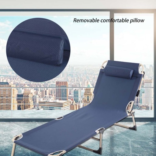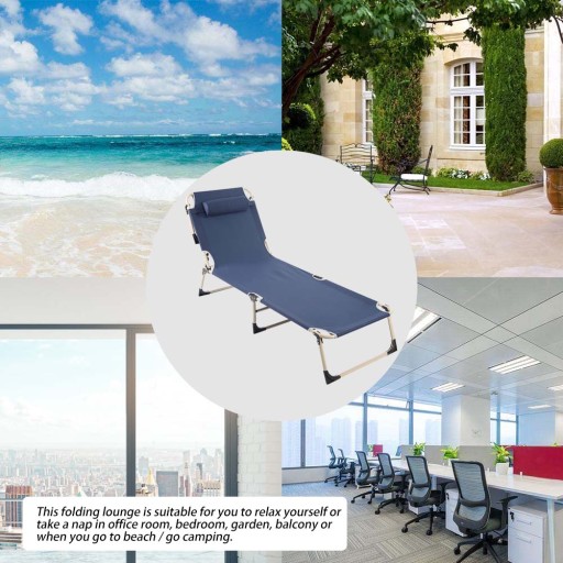 Ten składany salon jest odpowiedni do relaksu lub drzemki w biurze, sypialni, ogrodzie, na balkonie lub podczas wyjścia na plażę lub na kemping. Wykonany z mocnej konstrukcji, z możliwością regulacji w 4 pozycjach, możesz zwolnić nacisk leżąc na tym wygodnym rozkładanym krześle.