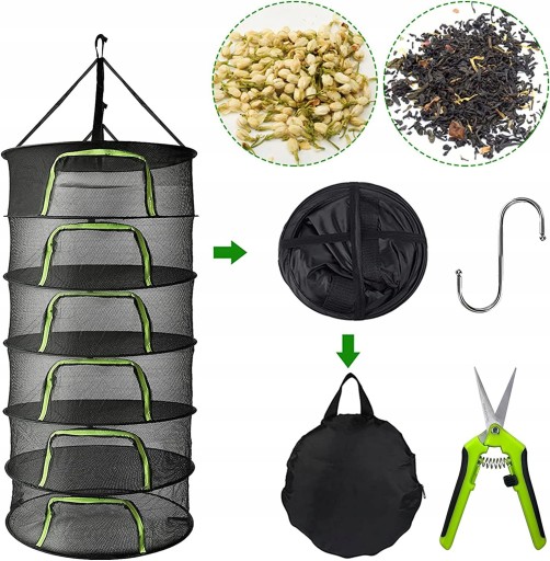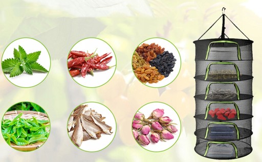 - SUSZARKA STOJAK SIATKA DO SUSZENIA ZIÓŁ WISZĄCY SKŁADANY 6-WARSTW -