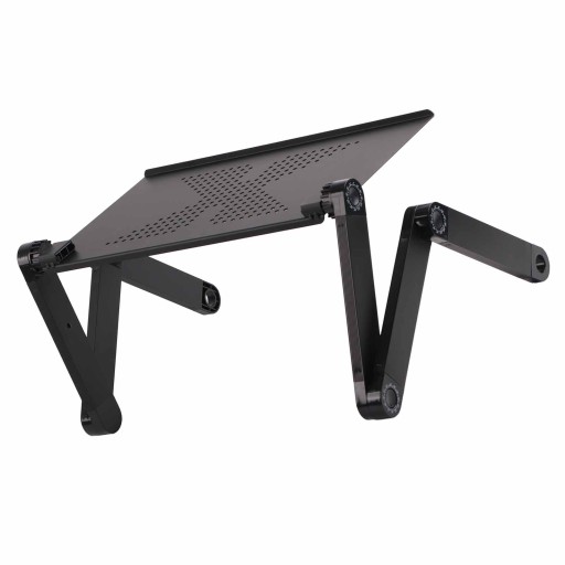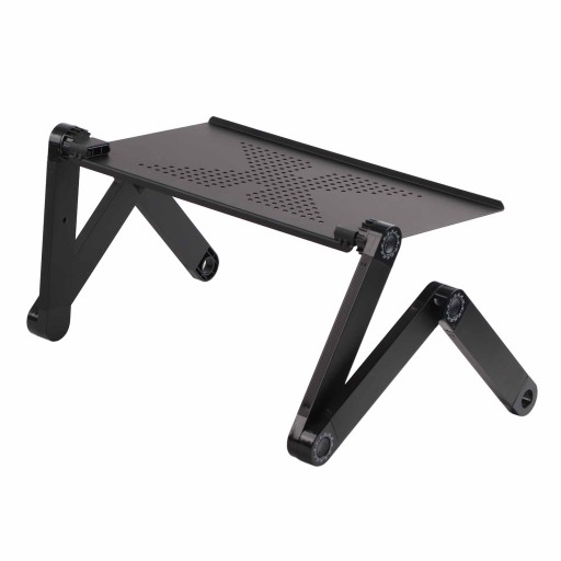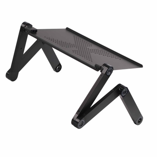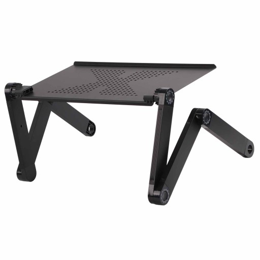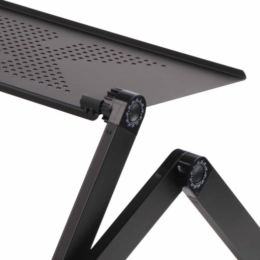 1. Ten regulowany, wentylowany aluminiowy stolik do laptopa i notebooka ma konstrukcję z wentylowanymi wnękami, które zmniejszają przegrzanie laptopa/notebooka