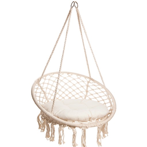 Naturalny materiał zapewnia także prawidłową wentylację, co utrzymuje komfort korzystania z wiszącego fotela nawet w upalne dni.
