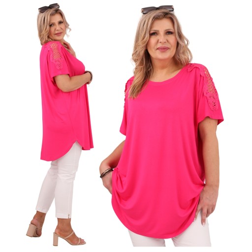 Ta bluzka to delikatny, ale jednocześnie odważny element garderoby. Luźny krój sprawia, że jest wygodna i niezobowiązująca, idealna na letnie dni lub na bardziej swobodne okazje. Koronkowe rękawy dodają jej subtelności i romantycznego uroku, równocześnie nadając całości unikalnego, kobiecego charakteru. To połączenie luzu i elegancji sprawia, że bluzka taka świetnie komponuje się zarówno z jeansami i trampkami, jak i spódniczką i szpilkami, pozwalając na stworzenie różnorodnych stylizacji.