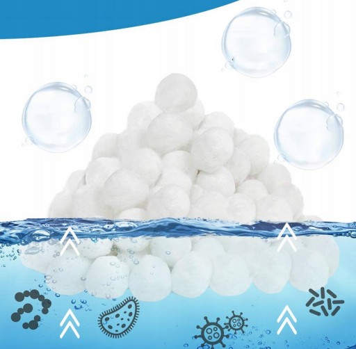 ✅ Kulki filtracyjne nie wymagają płukania wstecznego jak piasek, dzięki czemu oszczędzamy wodę. Kule można prać w pralce (bez użycia detergentów) lub płukać pod bieżącą wodą.