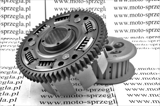 Po wstępnej ocenie wszystkich elementów pod kątem nadmiernego zużycia kosz jest centrowany w kilku etapach. Kolejnym krokiem jest wykonanie nowego, ulepszonego ułożyskowania wewnętrznego kosza poprzez inny materiał niż odlewane aluminium, . Sprężyny zostają zmienione na dłuższe , które nie pozwalają przemieszczać im się w żadną stronę. Jedyne co zostaję oryginalne to zakres pracy sprężyny i jej twardość . W koszu sprzęgłowym wiele sprężyn ma inne twardości . Dobieramy je odpowiednio do danego kosza sprzęgłowego w którym występują minimum 3 twardości . Jedyne co zostaję oryginalne to zakres pracy sprężyny. Oczywiście ta zasada nie tyczy się wszystkich motocykli ponieważ charakterystyka i praca silników są różne . Wiec w pewnych modelach luz na Tłumikach drgań czyli sprężynie musi występować i jest on uzależniony od charakterystyki danego silnika .Cześć aluminiowa poddawana jest uzupełnieniu materiału, rowki tarcz sprzęgłowych oraz uszkodzenia pod tłumikami drgań . Sprzęgło zostaje idealnie spasowane