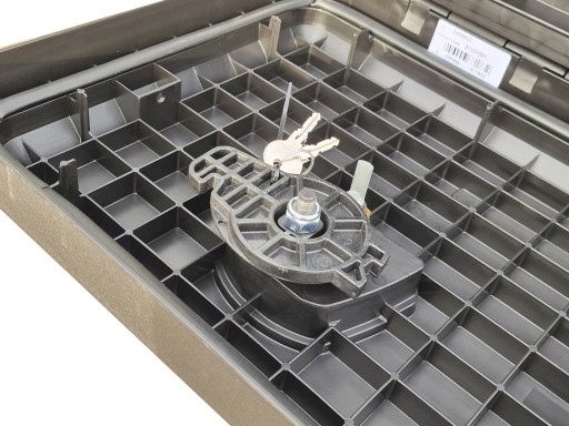 Skrzynka posiada wzmocnioną konstrukcje poprzez użebrowanie oraz przetłoczenia. Równie mocny zawias umieszczony na całej szerokości skrzynki.