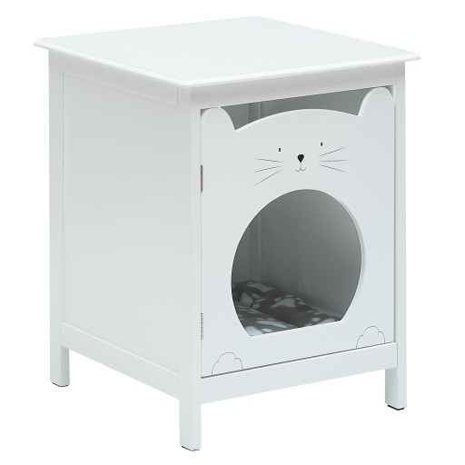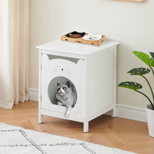 Praktyczna i wielofunkcyjna – ta szafka dla kotów służy jako stylowy domek dla kotów i funkcjonalny stolik boczny, zapewniając przestrzeń na rzeczy i przytulne miejsce wypoczynku dla futrzanego przyjaciela.