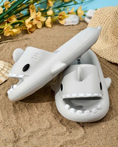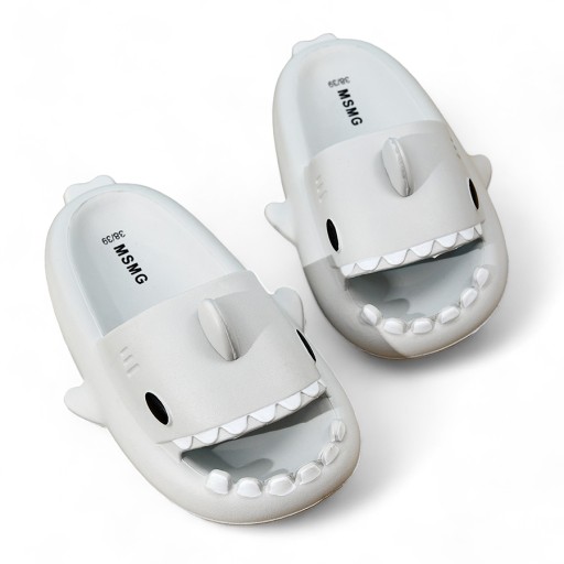 Świetne damskie gumowe klapki na płaskiej podeszwie. Model przypomina rekina! Idealny wybór na wakacje!