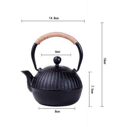 Cechy: Żelazny uchwyt jest starannie obrabiany, jest odporny na zarysowania i nie jest łatwy do złamania. Żelazna pokrywa czajniczka jest mała i elegancka, prosta i nieskomplikowany.jest piękny, ale ma również pewien efekt izolacji cieplnej, aby zapobiec zranieniu rąk.prosty haczykowaty wylewka,miękki wylot wody,herbata nie jest łatwa do przelania.Dzięki filtrowi jest wygodna do wykonania herbata. Jest wygodny i prosty.