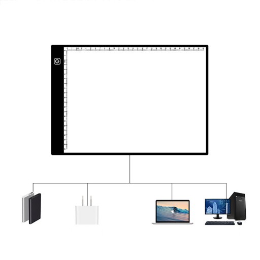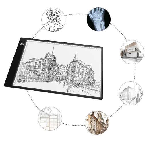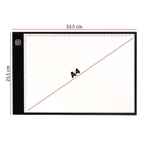Profesjonalna podświetlana deska kreślarska przeznaczona do sporządzania szkiców oraz rysunków na kalkach i papierze. Dzięki bardzo dobremu podświetleniu LED o natężeniu 300-350 lm arkusz z danym obrazem, który chcemy odrysować prześwietli się na kartkę papieru. Zaleca się aby kartka papieru na którą nanosimy rysunek, nie przekraczała gramatury 200g/m2. W celu polepszenia efektu można przyciemnić światło w pomieszczeniu