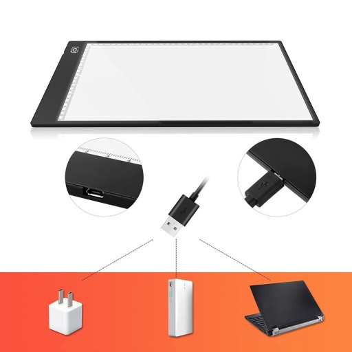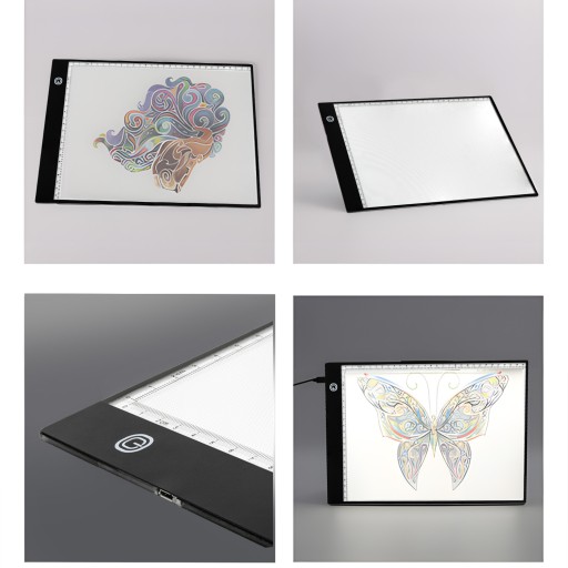 Produkt jest bardzo lekki, a jego grubość wynosi około 4 mm. W połączeniu z twardym akrylowym wykończeniem bardzo przyjemnie się nim operuje. Rysunki można wykonywać np. siedząc czy opierając tablicę na kolanach. Twarda powierzchnia pozwala również przymocować rysunki do deski za pomocą klamerek zaciskowych. Wbudowane diody LED generują bezpieczne dla oka oświetlenie, dzięki czemu oczy nie będą się tak męczyć podczas wykonywania rysunku.