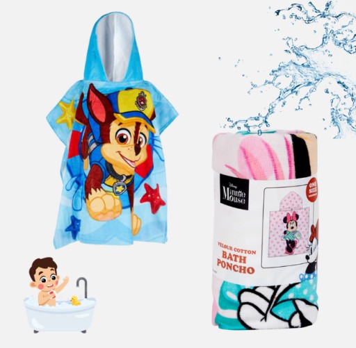 Przedstawiamy niezwykłe ponczo kąpielowe z kapturem, które nie tylko umili kąpiel Twojemu dziecku, ale także stanie się ulubionym dodatkiem do jego codziennej pielęgnacji. Z miękkiego i przyjemnego materiału, to ponczo zapewnia ciepło i komfort po kąpieli, jednocześnie dodając radości dzięki zabawnym wzorom ulubionych postaci z kreskówek.