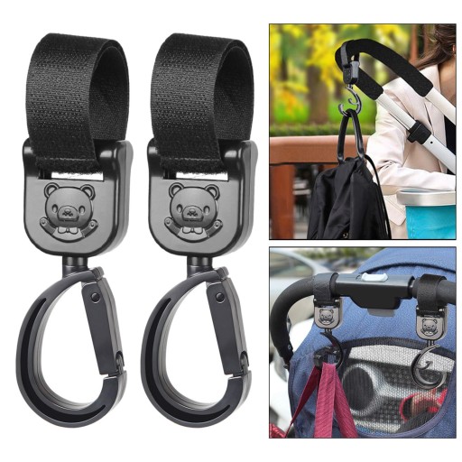 2 szt. Klips do wózka dziecięcego haczyki do wózka wiszące torby torebka czarna gruba