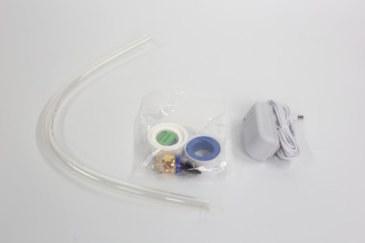 W zestawie: buteleczka, zasilacz, zestaw do powieszenia oraz podłączenia do instalacji, instrukcja