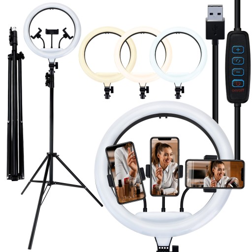 Ponadto lampa umożliwia regulację natężenia światła. Dzięki temu można dostosować jasność oświetlenia do konkretnej sceny lub efektu, który potrzeba osiągnąć. Lampa jest wyposażona w trzy giętkie i obrotowe uchwyty na telefon.