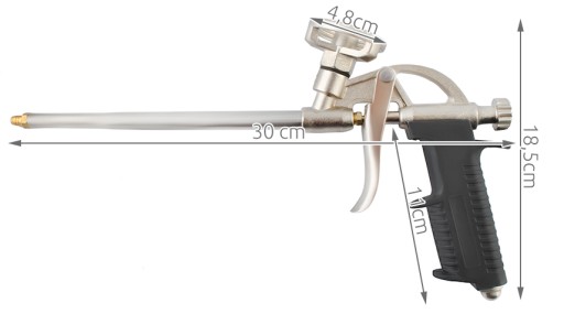 - PLASTIKOWA RĘKOJEŚĆ – specjalnie profilowany uchwyt z tworzywa sztucznego gwarantuje stabilne trzymanie narzędzia w ręce, co ma znaczący wpływ na precyzyjne użycie piany, szczególnie w miejscach trudno dostępnych.