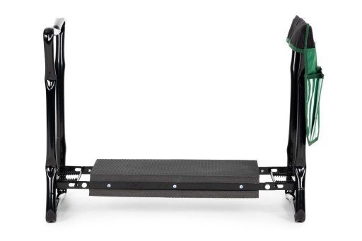 - Dzięki solidnej, metalowej konstrukcji, klęcznik wytrzymuje duże obciążenie, co sprawia, że zachowuje swoją stabilność podczas wstawania z pozycji klęczącej, unikniemy tym samym podpierania się o ziemię. Aby złożyć klęcznik wystarczy docisnąć blokadę, a całość złoży się do wymiarów, które ułatwią jego transport i przechowywanie