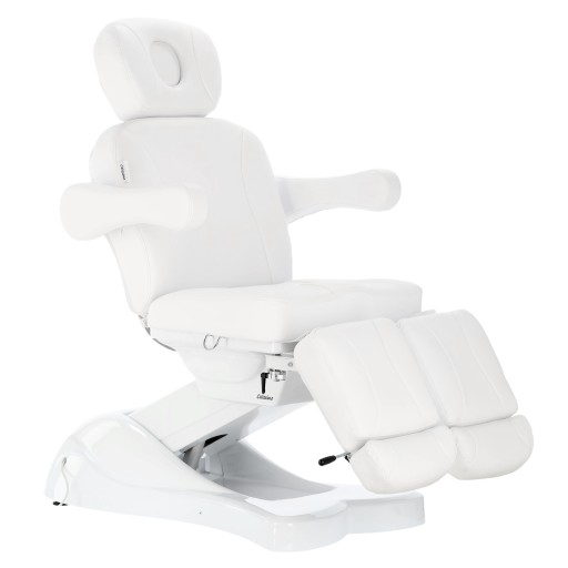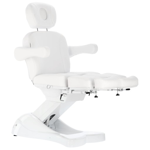Wyposażony w innowacyjne elektryczne silniki, fotel umożliwia niezwykle łatwą i precyzyjną regulację elementów. Dzięki temu, zarówno specjalista, jak i klient mogą cieszyć się idealnie dopasowanym ustawieniem fotela, co jest kluczowe dla efektywności zabiegów. Regulacja odbywa się płynnie i cicho, zapewniając nienaruszoną atmosferę relaksu.