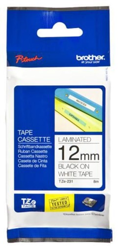 Brother TZ-231 Ламинированный скотч черный на белом, TZe, 8 м, 1,2 см