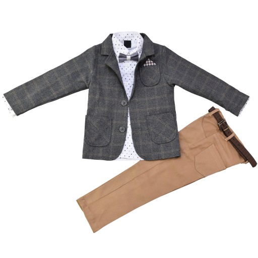СЕРЫЙ КОСТЮМ ДЛЯ МАЛЬЧИКА, ПИДЖАК, РУБАШКА, БРЮКИ, СВАДЕБНЫЙ БАНТ, Размер 5Л
