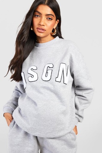 СВИТШОТ ДЛЯ МАТЕРИАЛОВ БЕЗ КАПЮШОНА, СЕРЫЙ, С НАШИВКАМИ BOOHOO WRITING 38