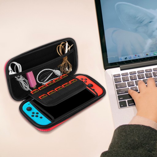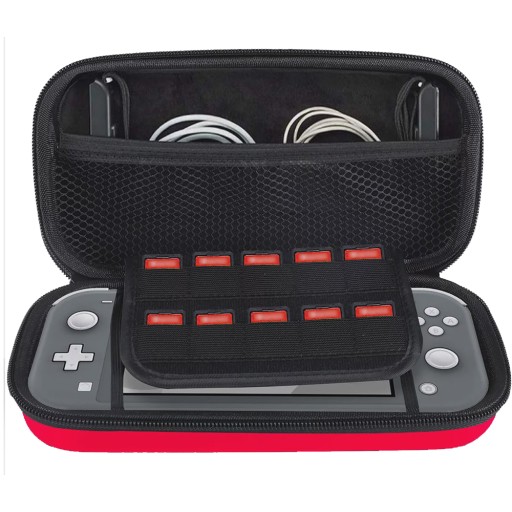 Pomimo niewielkich rozmiarów etui potrafi pomieścić wszystkie niezbędne akcesoria przydatne dla gracza razem z konsolą. Specjalne oszycia i przegródki pozwalają na przechowywanie padów Joy-Con, słuchawek oraz przewodu zasilającego. Dodatkowo znajdziemy tam miejsce na aż 10 kartridży, aby mieć swoje ulubione gry zawsze pod ręką!