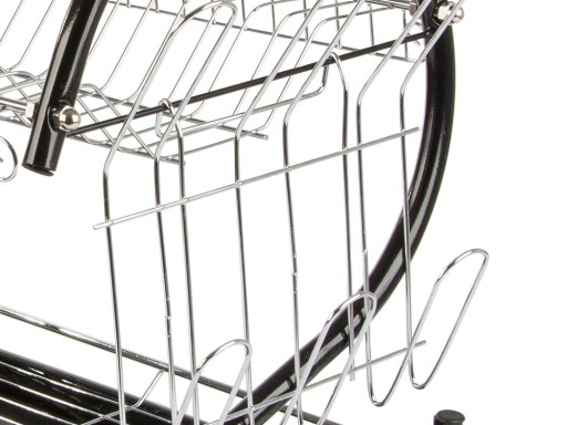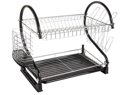 Dwupoziomowa suszarka do naczyń to niezbędny sprzęt w każdej kuchni. Jest bardzo praktyczna, posiada dwa poziomy na których z powodzeniem zmieścimy duże ilości talerzy miseczek czy szklanek. Oprócz tego posiada dwa zawieszane uchwyty Jeden na sztućce drugi na szklanki lub kieliszki.