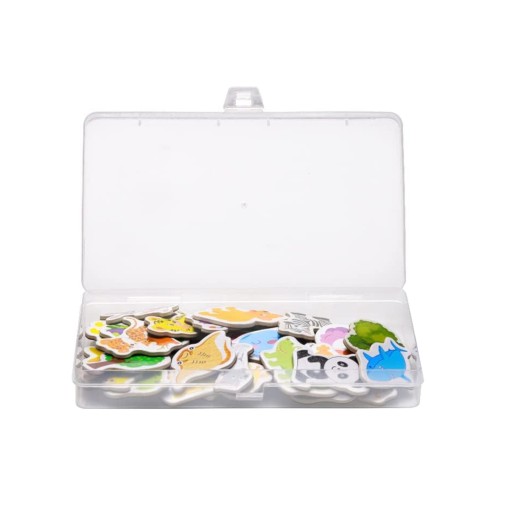 Magnesy na lodówkę zwierzęta piankowe 36 elementów plastikowy pojemnik dla dzieci