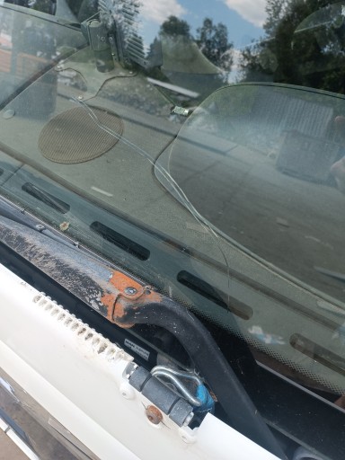 Szyba czołowa pęknięta od strony kierowcy widoczne na zdjęciu
