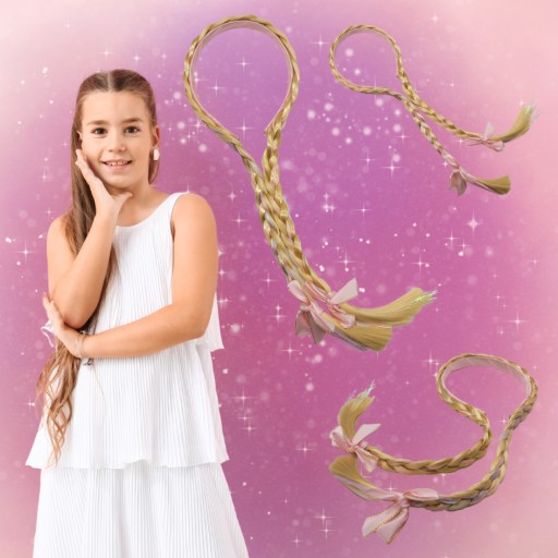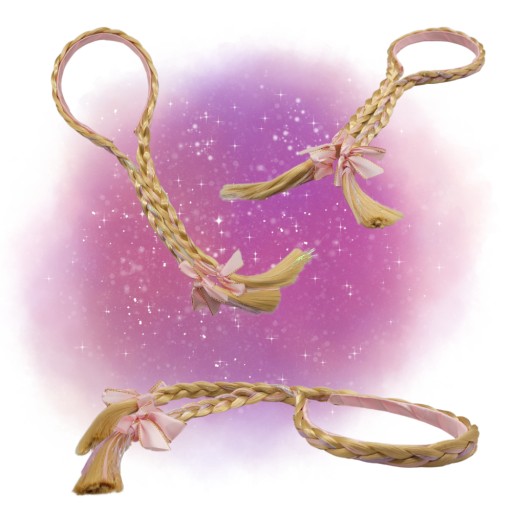 Włosy na opasce grube pasmo warkoczy w pięknym blond kolorze. Włosy są delikatne i urozmaicone SREBRNĄ NITKĄ. Całość znajduje się na opasce z uroczą KOKARDĄ na zakończeniach warkoczy. Świetnie się sprawdzą jako dodatek do codziennych stylizacji jak i również do odtwarzania różnych ról.