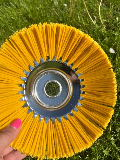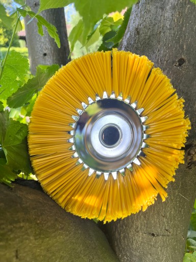 - Tarcza szczotkowa z wysokiej jakości nylonu odpornej na obciążenia siły odśrodkowej oraz bardzo wysokie obroty dochodzące nawet do 10 tys/min.