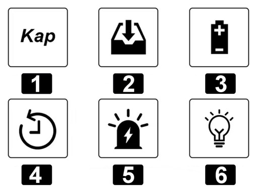 - Wskaźnik alarmu niskiego napięcia.