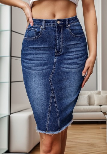 MODA SPÓDNICA JEANSOWA Z ROZCIĘCIEM OŁÓWKOWA ELEGANCKA MIDI NIEBIESKI