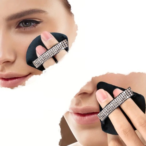 ⭐5x Zestaw Mini puff do pudru puszek do makijażu do pudrowania twarzy czarne cyrkonie 5szt Seol Cosmetics gąbeczki⭐