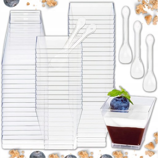 KUBEK PUCHARKI NA PRZEKĄSKI DESERY 60ML 50SZT POJEMNIK NA DESER KWADRATOWY
