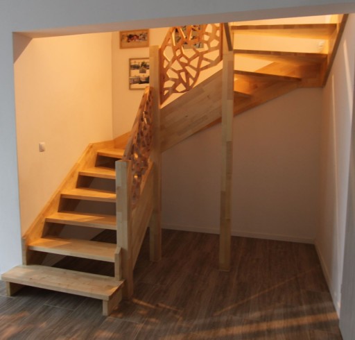 - cena dotyczy stopni, słupów i wang (policzków): materiał klon wielowczep (łączenie na długości i szerokości) gr 40mm z wygodnymi zabiegami, słupki w przekroju 80x80mm z możliwością osadzenia balustrady (wyższe). Istnieje możliwość wyboru innego gatunku drewna z naszej oferty - cena zostanie wówczas przekalkulowana.