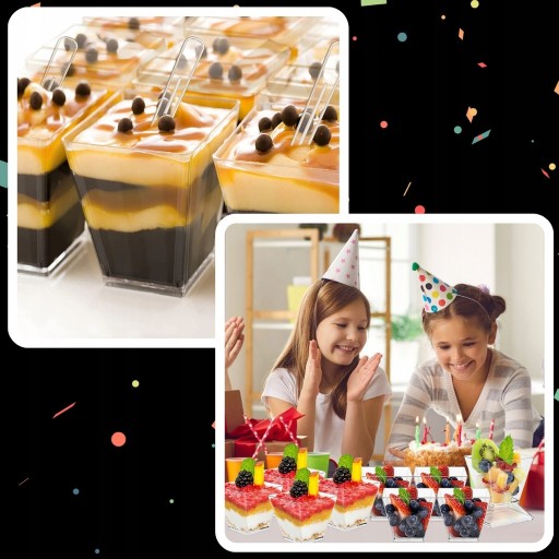 KUBEK PUCHARKI NA PRZEKĄSKI DESERY 150ML 24SZT POJEMNIK NA DESER KWADRATOWY