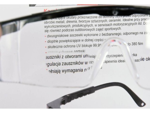 Okulary ochronne YT-73615 z soczewkami powiększającymi przeznaczone są do ochrony oczu przy pracach ręcznych i mechanicznych, takich jak szlifowanie, wiercenie, dłutowanie itp.