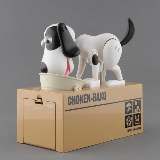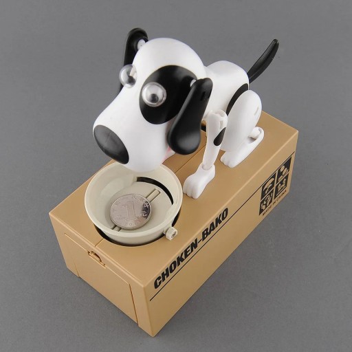 ИНТЕРАКТИВНАЯ МАШИНА-КОПИЛКА ДЛЯ СОБАКИ СОБАКА ЕСТ МОНЕТЫ БЕЛЫЕ И ЧЕРНЫЕ